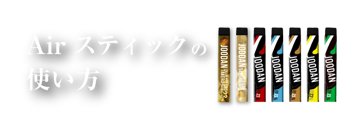 - タバコではありません。JOODAN AIRスティックには、ニコチンやタールなどの成分は一切含まれません。煙ではなく蒸気が出ているだけで、副流煙による健康被害や室内や洋服に匂いが残るような心配もありません。